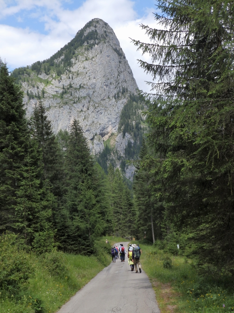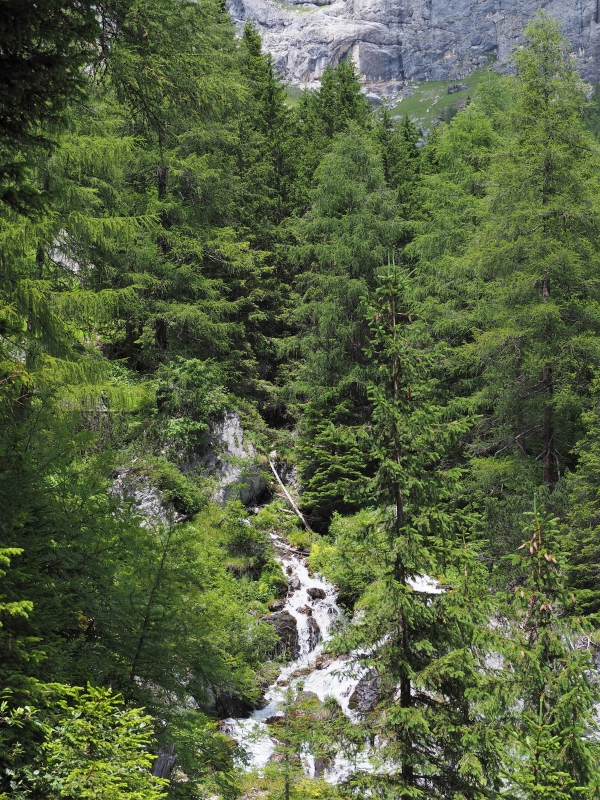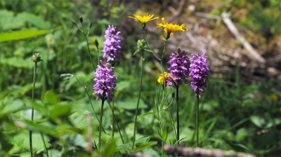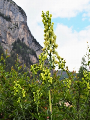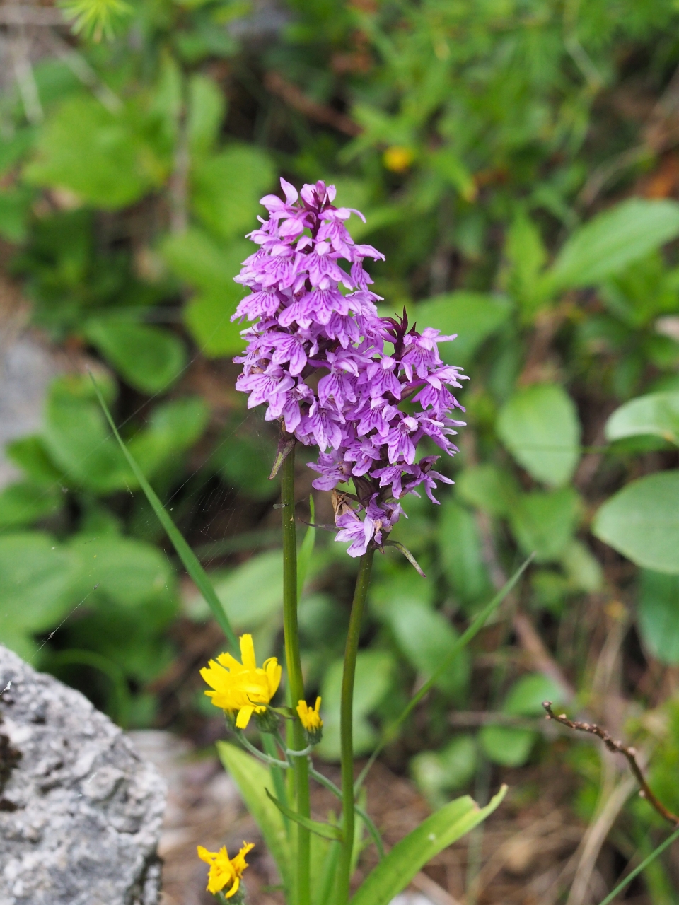 | マルモラーダに登るロープウェイを見てトレッキング開始。 此処は樹林帯の為沢山の花が出てきます。 |