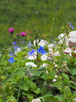 | マンテマ ベロニカ・カマエドゥリス 周辺の花散策も欠かせません。 |
