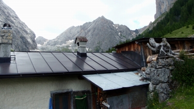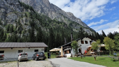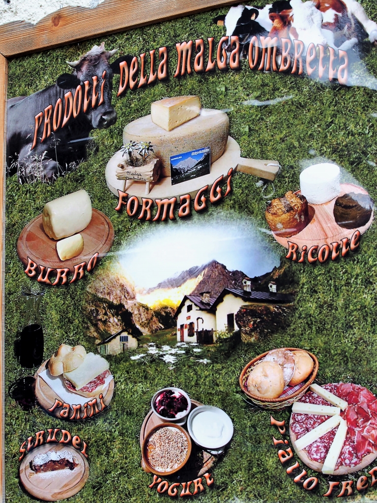 | 時間がたっぷりあるのでマルモラーダの南面を見たり周辺を散策します。 ここではガイドがチーズ小屋で買ったチーズとベーコンの プレートをご馳走してくれました。 |