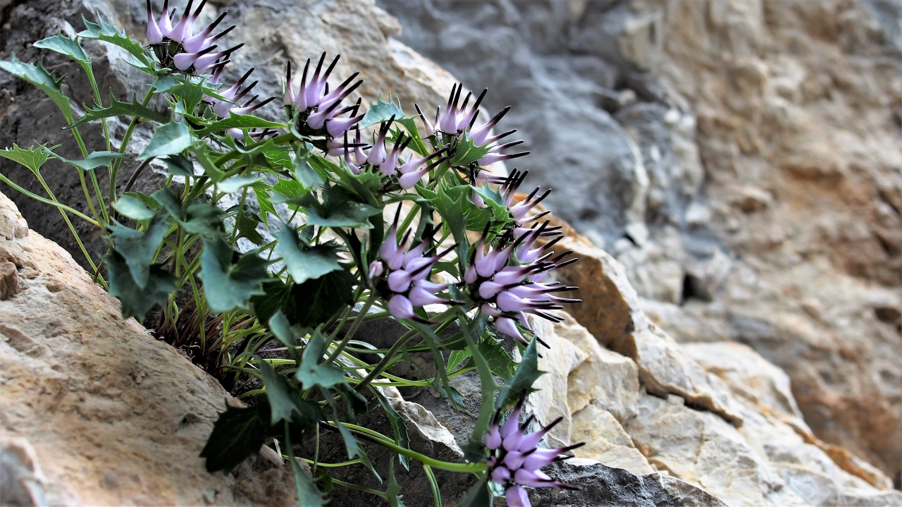 | フィテウマ・コモスム(アクマノカギヅメ) この花はトレッキング中2度しか見ませんでした。 一度目は蕾でしたがここでは咲いていました。 ドロミテ固有種であまり見られないそうです。 |