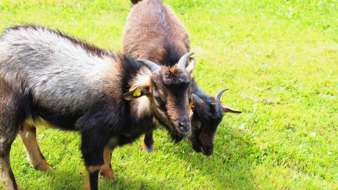 | 飼われていたヤギ。 ヤギの周りの柵は電気柵になっています。 流れ星と同行の男性が近寄っていきます。 周辺で休憩していた他のメンバーとかレストランの観光客全員の目は 不用意に近づいた2人がシビレルのを期待して注目しています。 するとまもなく電気柵に触った同行の男性シビレて「手をびりびり振り上げる」 全員大笑いでした。 |