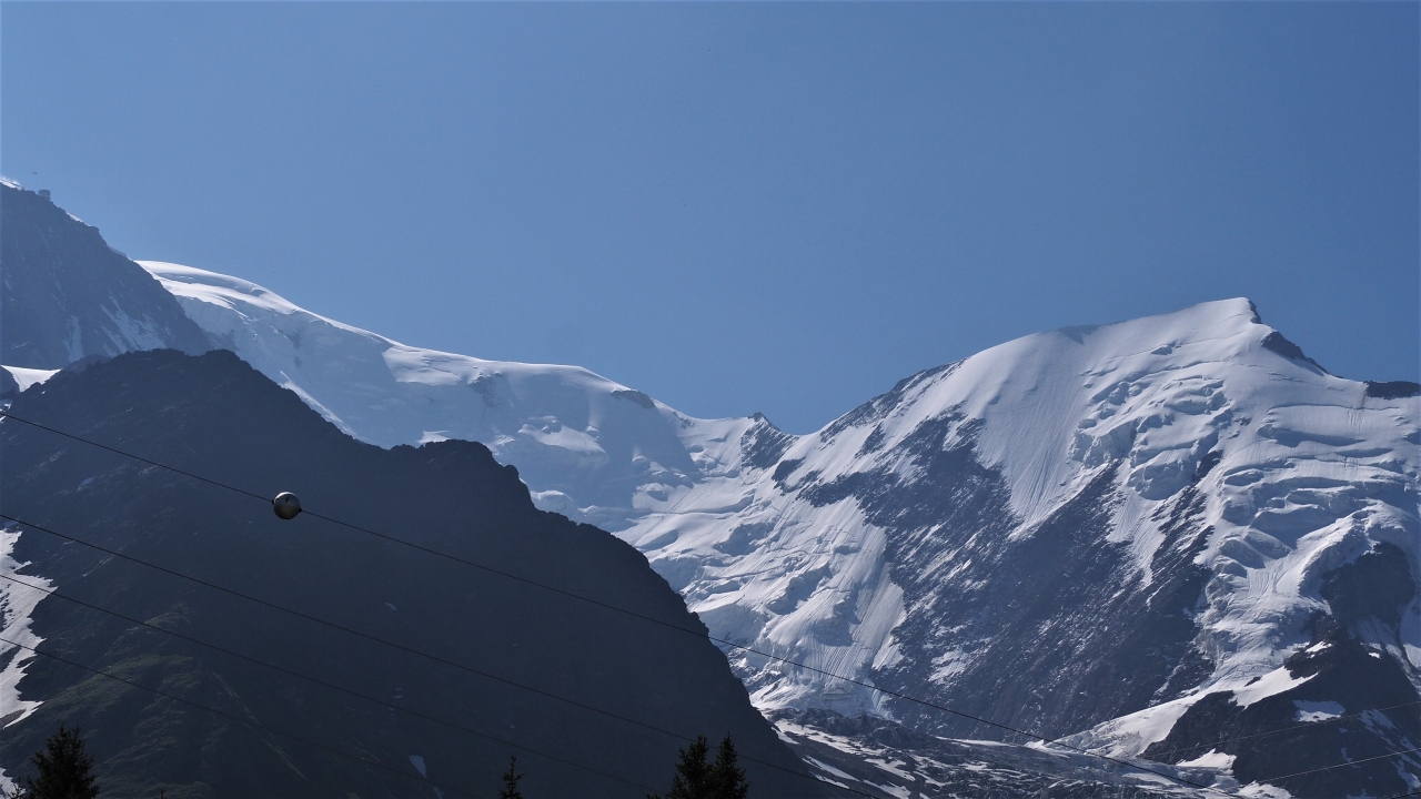 | 行動 シャモニー(路線バス20分)〜レ・ズッシュ(1010m)ロープウェイ使用 〜ベルビュー(1801m)〜トリコ峠(2120m)〜ミアージュ小屋(1559m) |