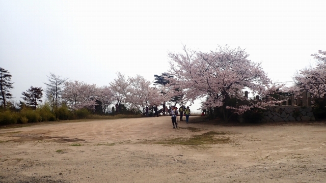 | ダンガメ山で児島湾を見ながら昼食。 写真では、分かりませんがすぐ近くに児島湾が見えました。 |