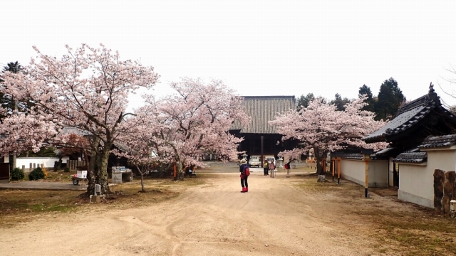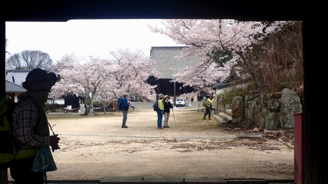 | 大賀島寺山門を額縁にして本堂と桜を撮る。 | |