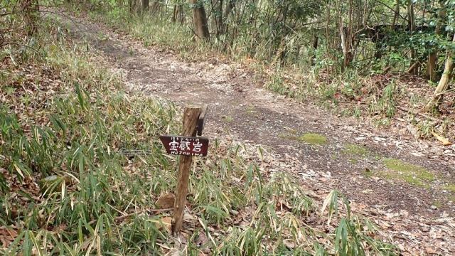 | 宝蔵岩への道標。 大賀島寺から車道をを歩き宝蔵岩へ向いました。 |