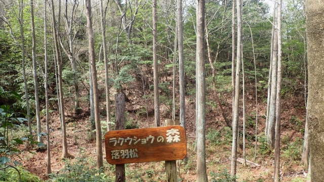 | 雀岩への道標。 ラクウショウの森を見学し雀岩へ向います。 |