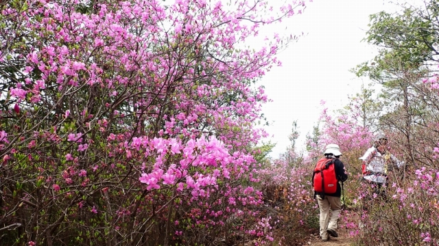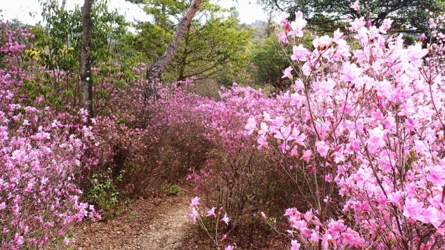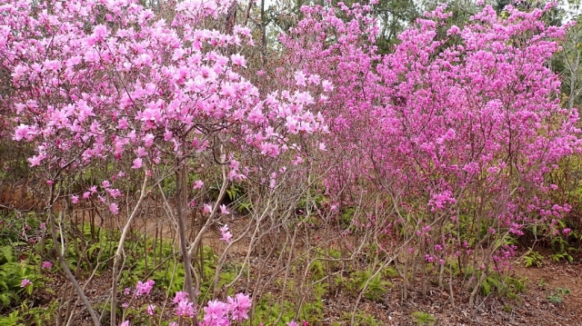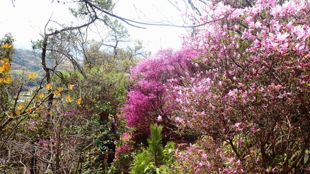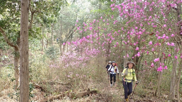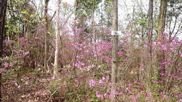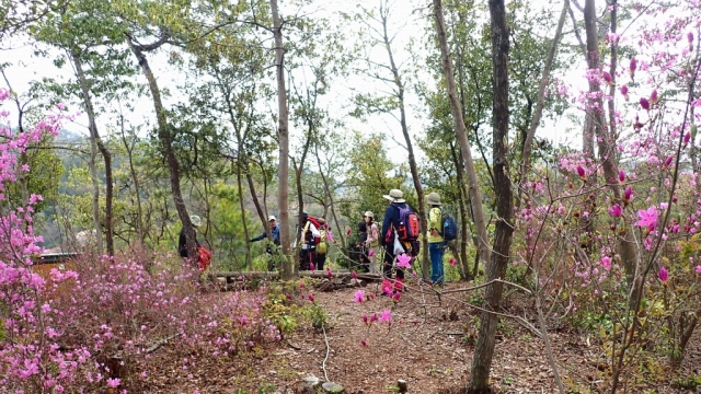 | ダンガメ山展望所から松山へ向います。 標高が下がった為か、ツツジは、開花株が多くなります。 |