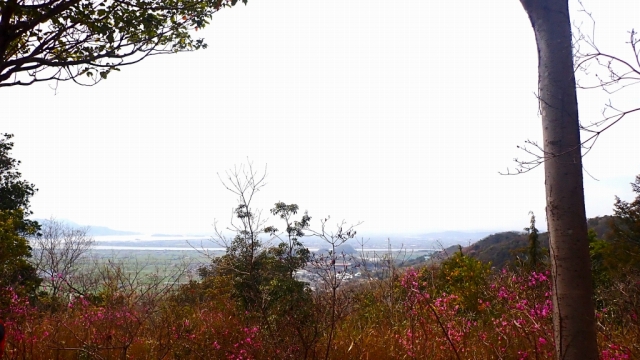 | ダンガメ山展望所から児島湾の眺望。 ダンガメ山や展望所のツツジは、咲き始めでした。 |
