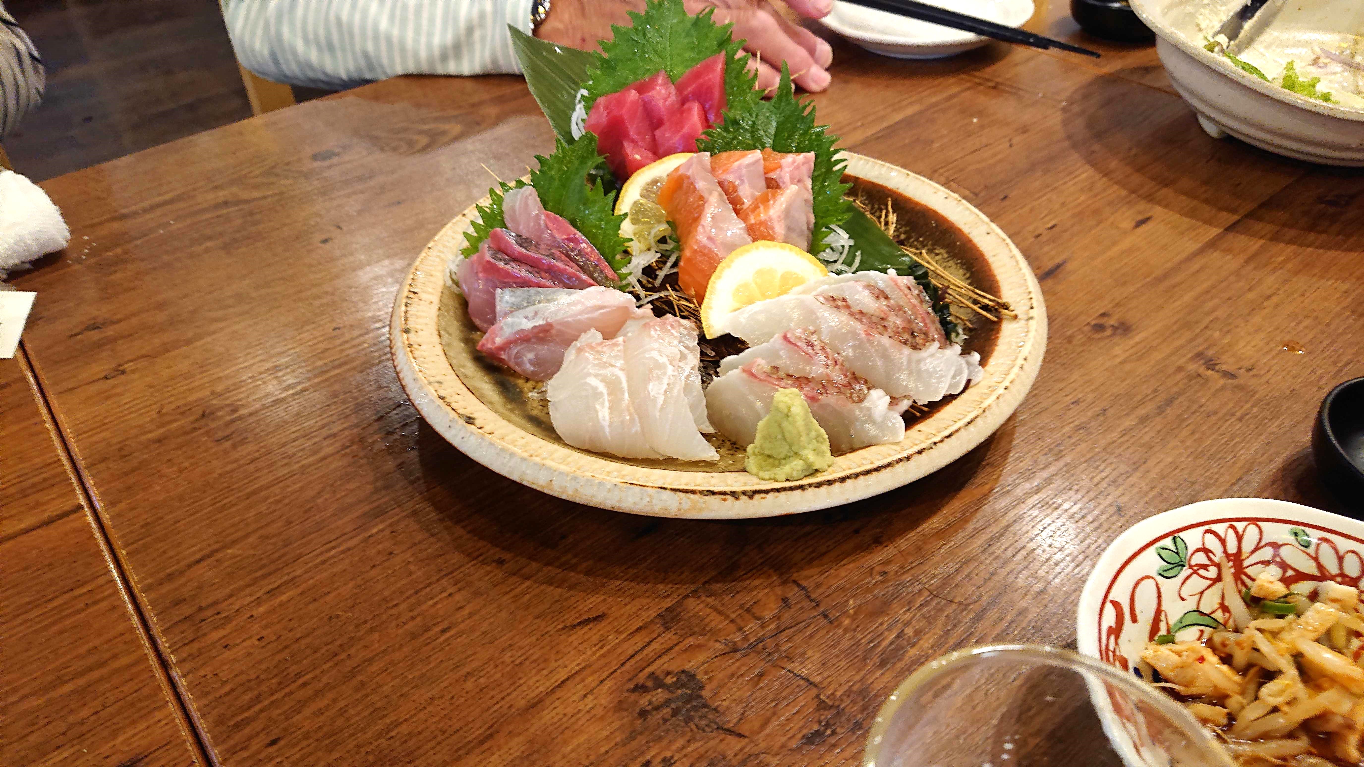| 居酒屋 御造り 夕食は、ホテル近くの居酒屋で飲み放題のコース料理を食べました。 |