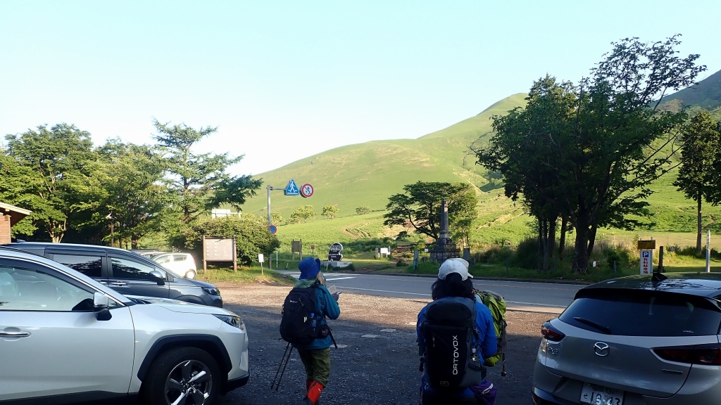 | 前日の夜高知を出て、フェリーで船中泊し朝6時に由布岳登山口に着くが、人気の 山でミヤマキリシマの咲く季節ですので直ぐに無料駐車場は満杯になりました。 |