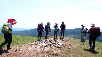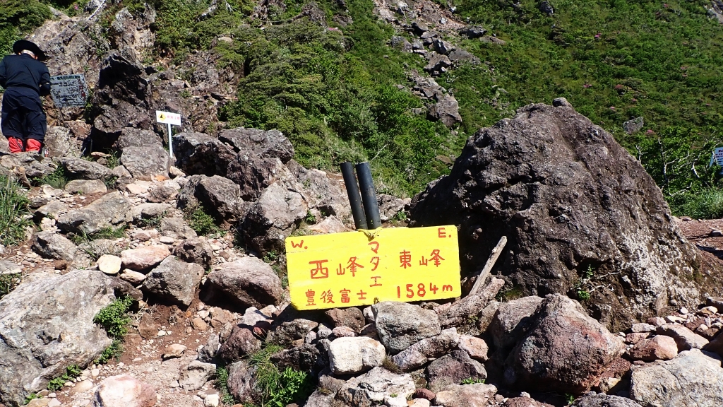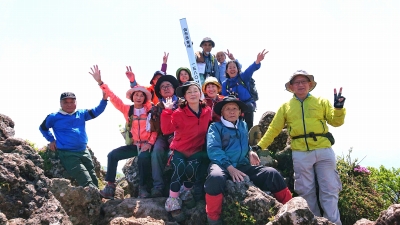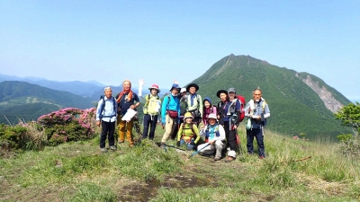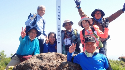 | 東峰では、西峰に登ったグループを待っていてくれました。 山頂で由布岳に登った全員で集合写真を撮り東峰グループは、 下山し西峰グループは昼食にしました。 |