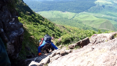 | 最初の鎖場、鎖を使わず登れますがバランスを取る為使用しました。 | |