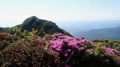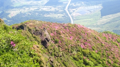 | 西峰からの眺望 オオヤマフスマとミヤマキリシマ | |