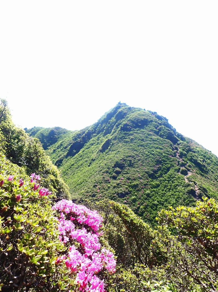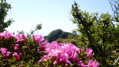 | お鉢に咲くミヤマキリシマ 西峰山頂に到着 | |
