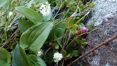 | イワカガミ マイヅルソウ 西峰に咲いていました。 |