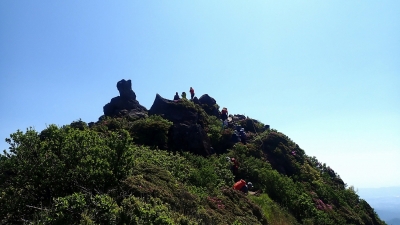 | 東峰から西峰を写す 山頂を後にします 東峰に登ったグループが撮影 ・・・・・・・・・・・・・・・ |