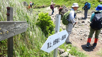 ミヤマキリシマと風景を鑑賞 山頂まで400mの標識 |