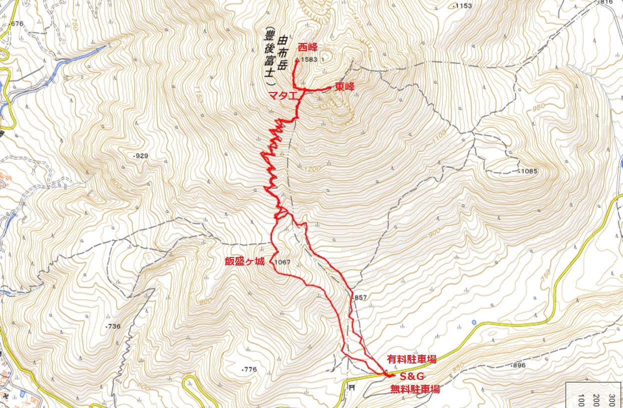| 飯盛ヶ城と由布岳 正面ルートを登る 先に飯盛ヶ城に登る予定でしたが、気が付いた時には正面 ルートをだいぶ歩いていて下山時に登る事に変更しました。 |
